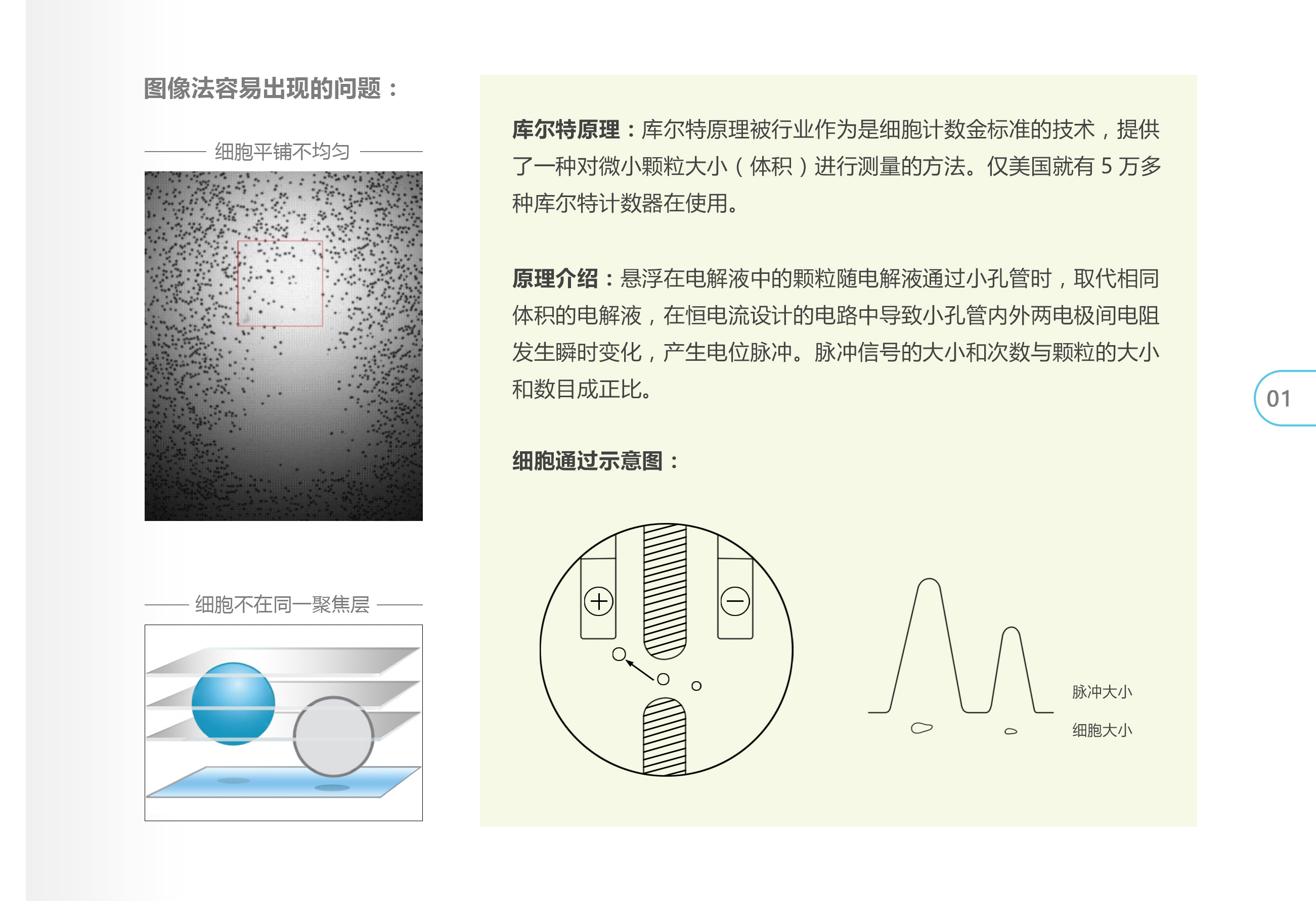 庫爾特原理被行業(yè)稱作細(xì)胞計(jì)數(shù)金標(biāo)準(zhǔn)的技術(shù),專為細(xì)胞應(yīng)用而設(shè)計(jì),其將細(xì)胞計(jì)數(shù)與細(xì)胞直徑大小測量功能合二為一,可用于細(xì)胞、顆粒計(jì)數(shù)及粒度分析。