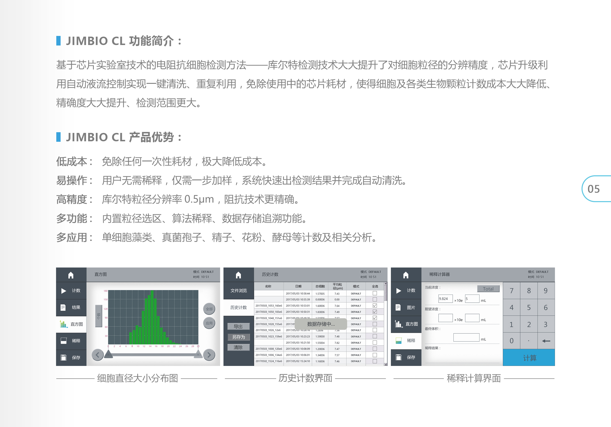 Jimbio CL采用流式庫爾特原理,庫爾特粒徑分辨率0.5μm,阻抗技術(shù)更精確;