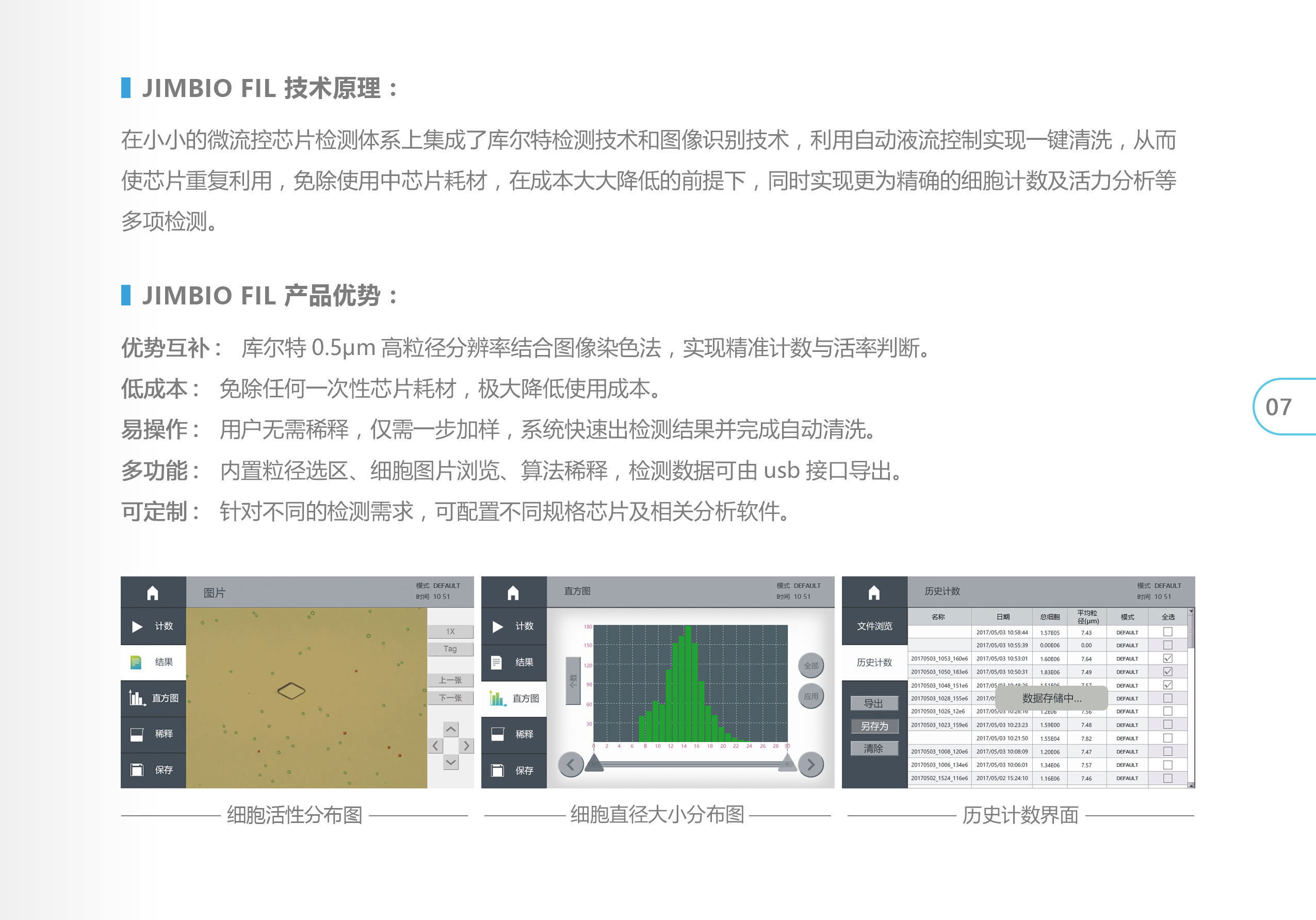 Jimbio FIL結(jié)合了流式庫爾特原理和圖像法,庫爾特0.5μm高粒徑分辨率結(jié)合圖像染色法,實(shí)現(xiàn)精準(zhǔn)計(jì)數(shù)與細(xì)胞活率判斷。