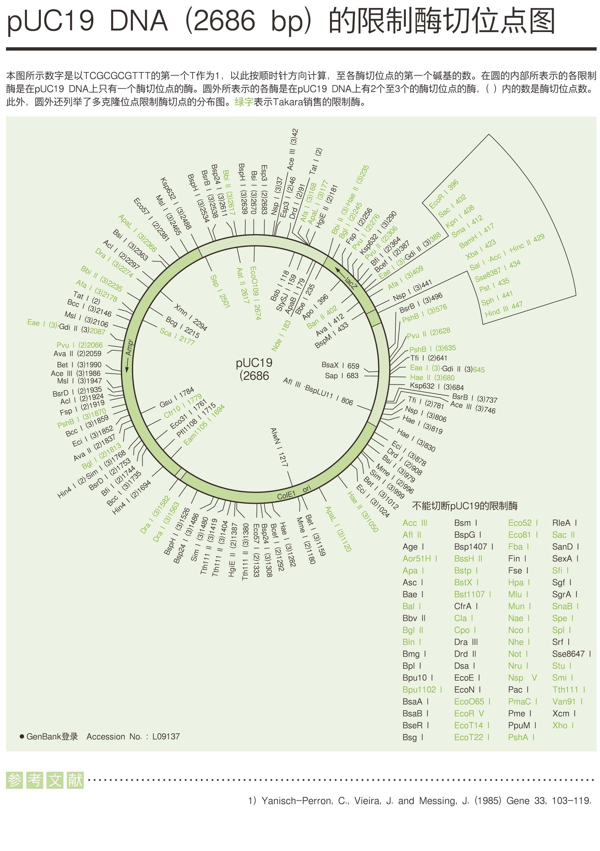 pUC19 DNA的限制酶切位點(diǎn)圖