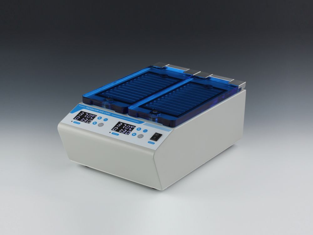 2. 兩個(gè)獨(dú)立孵育倉(cāng),單獨(dú)定時(shí)控溫,互不影響,每個(gè)孵育倉(cāng)可同時(shí)存放12卡,處理樣品快速高效。