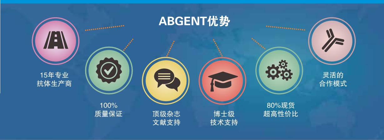 ABGENT公司于2001年在美國(guó)圣地亞哥(San Diego)成立,是一家開發(fā)、生產(chǎn)、銷售抗體及診斷試劑的 生物技術(shù)公司。 ABGENT公司已擁有一支經(jīng)驗(yàn)豐富的多能型技術(shù)研發(fā)人才隊(duì)伍和優(yōu)秀、刻苦的管理團(tuán)隊(duì),在美國(guó)圣地亞哥和中國(guó)上海均擁有精干的研發(fā)和生產(chǎn)部門及國(guó)際領(lǐng)先的設(shè)施,擁有強(qiáng)大的產(chǎn)品生產(chǎn)線;并已建立牢固的市場(chǎng)基礎(chǔ),為世界諸多生物醫(yī)藥研究機(jī)構(gòu)、大學(xué)、醫(yī)院、制藥及診斷試劑公司提供了數(shù)千種世界生物科技研究最前沿的高端產(chǎn)品,擁有超過10000余家客戶遍布世界各地,以歐美國(guó)家為主。