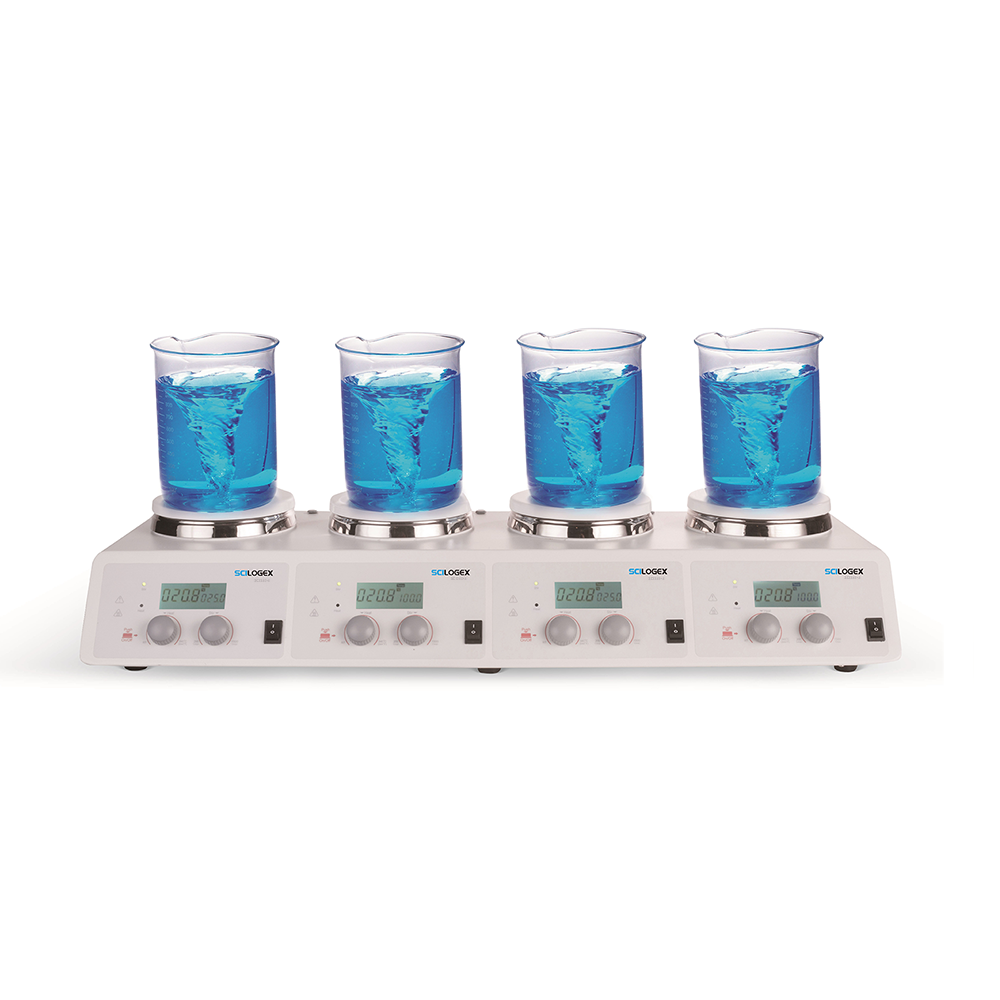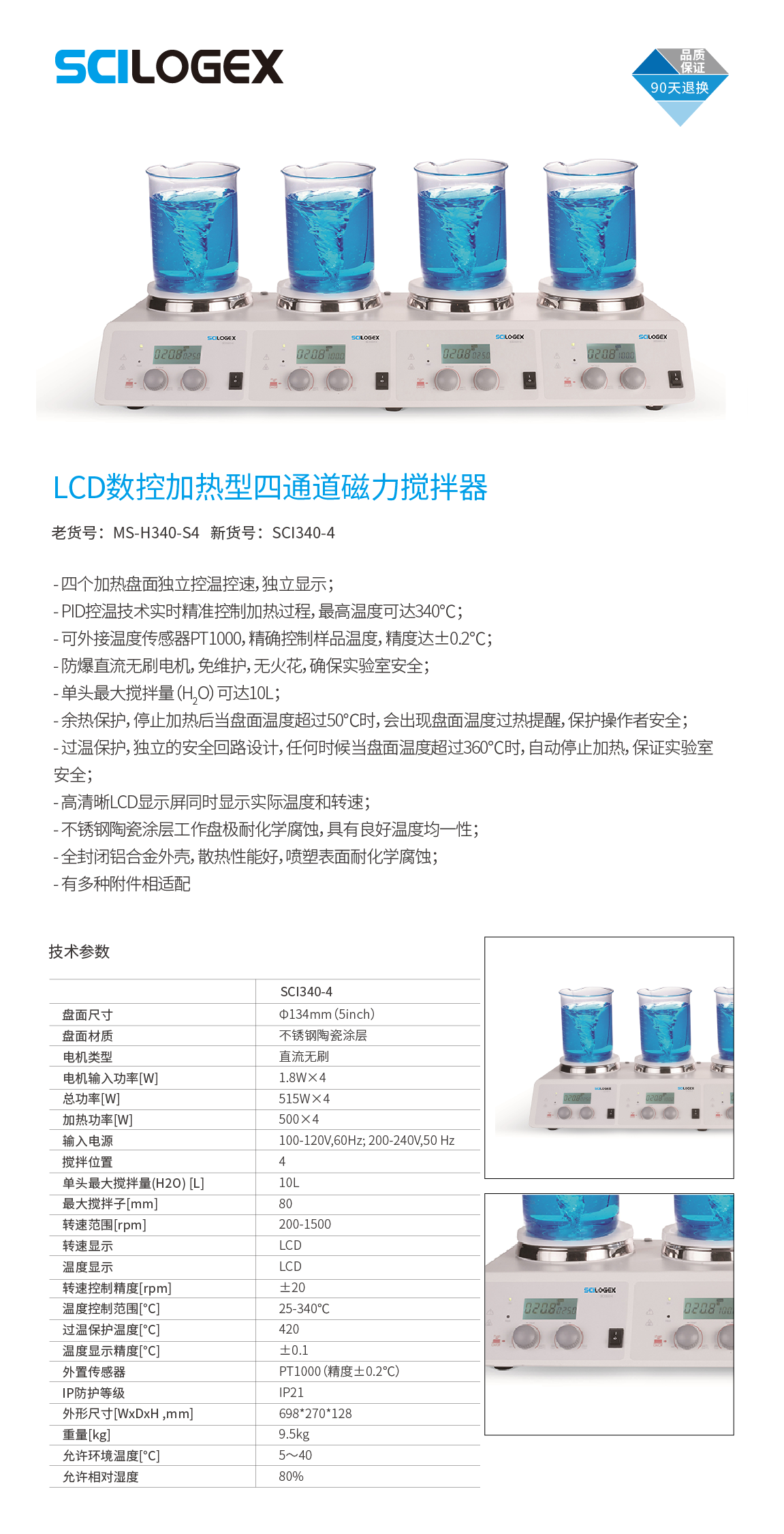 SCI340-4套裝 LCD數(shù)控加熱型四通道磁力攪拌器,陶瓷涂層盤面套裝 包含:主機、溫度傳感器、支架