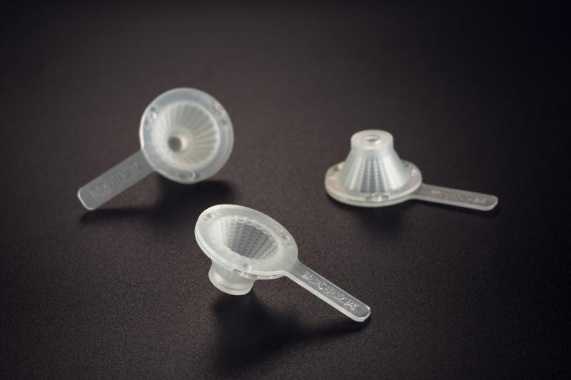 對于骨髓、外周血、體液等標本,由于抽取后不可避免出現(xiàn)凝固或蛋白沉淀,為避免儀器堵塞,需在處理前/上機前進行過濾操作,然而,買來尼龍濾網(wǎng),我們卻需要自己裁切,然后再用鑷子小心地夾住折成漏斗狀,費時費力費心。