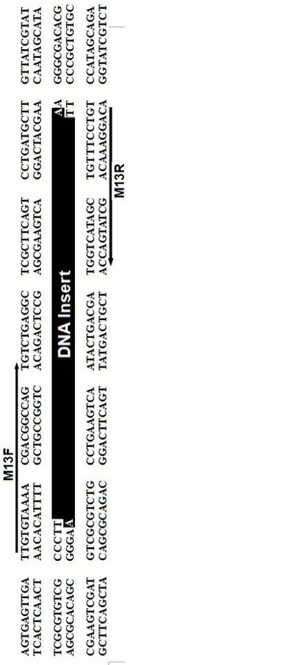 測序可以采用 M13F/M13R通用引物測序(見后面圖譜)