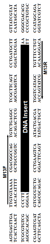 測(cè)序可以采用 M13F/M13R通用引物測(cè)序(見(jiàn)后面圖譜)