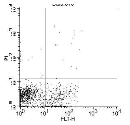 Jurkat細(xì)胞用紫外誘導(dǎo)凋亡后用Annexin V-eGFP/PI雙染流式分析圖譜