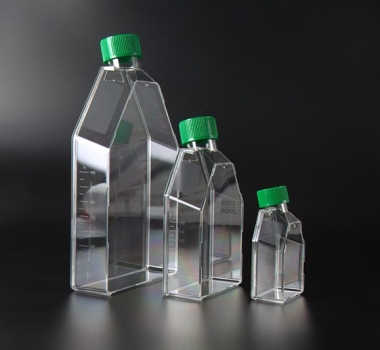 細(xì)胞培養(yǎng)瓶的培養(yǎng)面積有三種:25 cm2, 75cm2 和 175cm2。培養(yǎng)瓶側(cè)面的清晰刻度幫助提高了培養(yǎng)液容量的準(zhǔn)確性,磨砂區(qū)域方便做標(biāo)記用以區(qū)分不同實(shí)驗(yàn)?zāi)康钠孔?。背部的脊線使得培養(yǎng)瓶容易層疊,瓶頸的設(shè)計(jì)可以讓移液管和細(xì)胞刮刀進(jìn)入到瓶內(nèi)的任一角度。